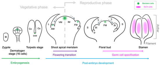 Chen, W.; Wang, P.; Liu, C.; Han, Y.; Zhao, F. Male Germ Cell Specification in Plants. Int. J. Mol. Sci. 2024, 25, 6643. https://doi.org/10.3390/ijms25126643