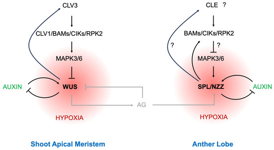 - Lee, H.; Jun, Y.S.; Cha, O.-K.; Sheen, J. Mitogen-Activated Protein Kinases MPK3 and MPK6 Are Required for Stem Cell Maintenance in the Arabidopsis Shoot Apical Meristem. Plant Cell Rep. 2019, 38, 311–319. [Google Scholar] [CrossRef] [PubMed]