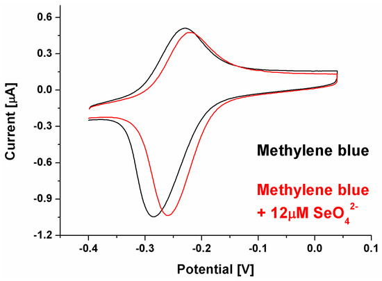 CV voltammogram for biosensor response registered with methylene blue as a redox marker with a selenate ion concentration of 12 μM.