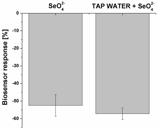 Both the presented selectivity and the low dissociation constant motivated us to also evaluate the developed biosensor response for selenate ion in the real sample. This was tap water, as we initially followed WHO regulations related to the selenate limits in drinking water (Figure 9).