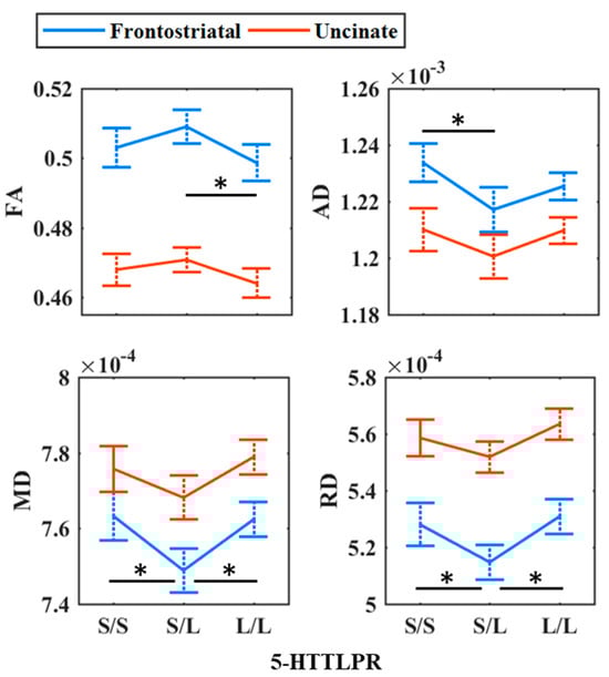 2.2. Linear Contrast Results for 5-HTTLPR and White Matter Tracts