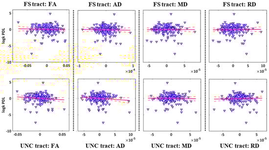 - Smith, S.M.; Jenkinson, M.; Johansen-Berg, H.; Rueckert, D.; Nichols, T.E.; Mackay, C.E.; Watkins, K.E.; Ciccarelli, O.; Cader, M.Z.; Matthews, P.M.; et al. Tract-based spatial statistics: Voxelwise analysis of multi-subject diffusion data. Neuroimage 2006, 31, 1487–1505. [Google Scholar] [CrossRef]