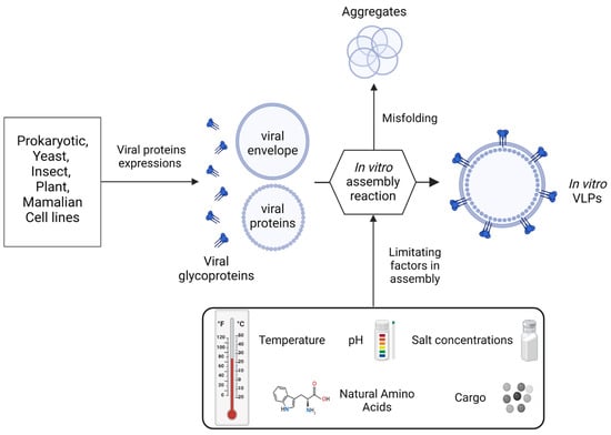 The assembly of VLPs is affected by their structure and composition. Furthermore, some factors can compromise VLP assembly, as shown in Figure 1 [].