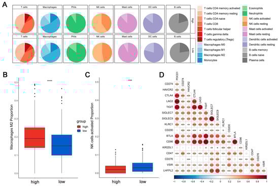 The details of the immune checkpoint molecules used in this study are provided in Table 1, including the names of the factors and their specific sources. The gene feature matrix from the “Cibersort” (https://cibersortx.stanford.edu/, accessed on 7 April 2024) was utilized for the investigation of immune cell infiltration proportions, containing 547 genes capable of distinguishing 22 human cell phenotypes []. Based on this matrix, the infiltration proportions of 22 immune cells were calculated.