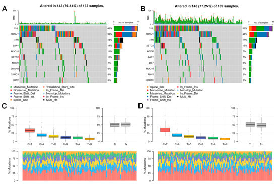 The single-nucleotide variant (SNV) data for KIRC in TCGA was downloaded from the GDC data portal using the R package “TCGAbiolinks” (version 2.18.0). After merging and organizing the information with the grouping of target genes, the R package “maftools” (version 2.10.1) was utilized to visualize the SNP profiles in different groups.