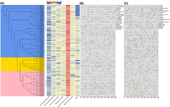 - Lescot, M.; Déhais, P.; Thijs, G.; Marchal, K.; Moreau, Y.; Van de Peer, Y.; Rouzé, P.; Rombauts, S. PlantCARE, a database of plant cis-acting regulatory elements and a portal to tools for in silico analysis of promoter sequences. Nucleic Acids Res. 2002, 30, 325–327. [Google Scholar] [CrossRef] [PubMed]