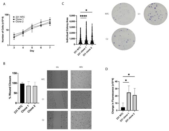 2.2. In Vitro Tumorigenic Assays Show Alterations in Clonogenic Growth and ALDH+ Cell Population