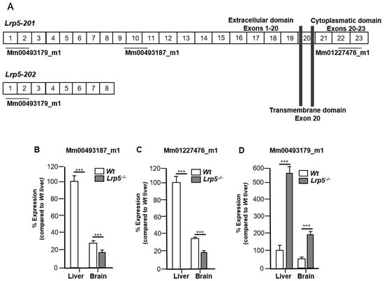 2.5. Lrp5 Quantity Is Different in Livers and Brains of Lrp5−/− Mice