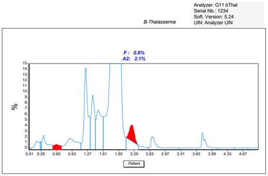 Chromatogram of the studied case, obtained using the Tosoh HPLC method using a haemoglobin kit.