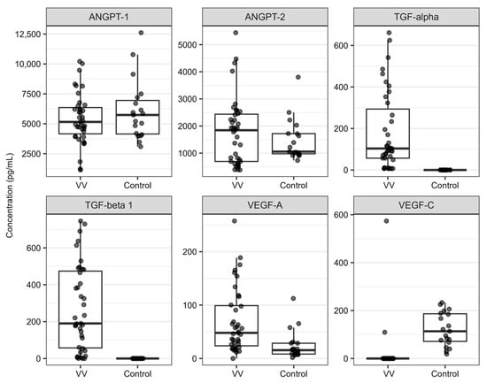 2.3. Angiogenesis-Related Proteins Are Dysregulated in VVs