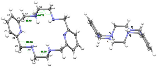 | Figures for the Ligand | Ligand, Counterion | CSD_REFCOD | Symmetry, Folding | CPy-CH(2)-NH(2)-CH(2) Conformations Chirality in Each Spacer | Ref. |