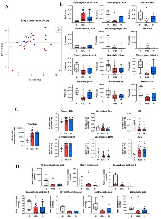 2.3. Idiosyncratic Drug-Induced Liver Injury Is Characterized by a Specific Fecal Metabolome and Bile Acid Profile