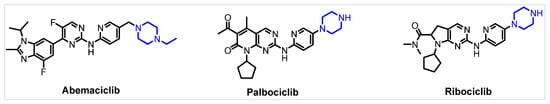 Chemical structures of the FDA approved CDK4/6 inhibitors: abemaciclib, palbociclib, and ribociclib.
