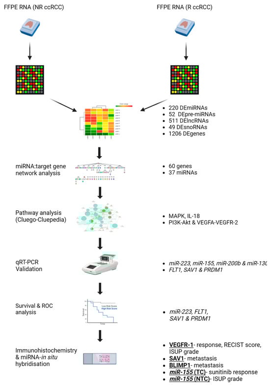- Armesto, M.; Marquez, M.; Arestin, M.; Errarte, P.; Rubio, A.; Manterola, L.; López, J.I.; Lawrie, C.H. Integrated mRNA and miRNA Transcriptomic Analyses Reveals Divergent Mechanisms of Sunitinib Resistance in Clear Cell Renal Cell Carcinoma (ccRCC). Cancers 2021, 13, 4401. [Google Scholar] [CrossRef] [PubMed]