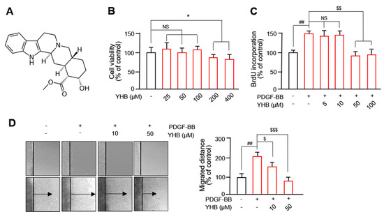 2.1. YHB Inhibits PDGF-BB-Induced VSMC Proliferation and Migration