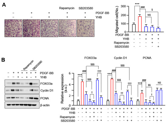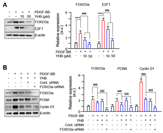 2.3. YHB Inhibits PDGF-BB-Induced VSMC Proliferation via Regulation of FOXO3a Factor