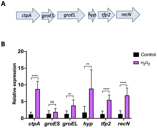 4.13. Relative Expression of tfp2 and Neighboring Genes under Oxidative Conditions