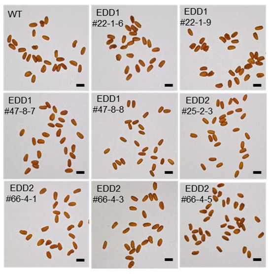 Figure 6. Seed morphology of EDD1 and EDD2 T3 lines. Scale bar, 2 mm.