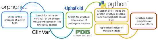 As of 10 October 2023, the Orpha.net database listed 4338 genes associated with MRD, which were the starting point for our investigation. ClinVar incorporated all the latter genes, adding the relevant information on the molecular consequence of their reported variants. Thus, we have delineated 3145 missense-mutated proteins involved in MRD that represent the target of our structural analysis.