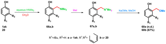 - Gardner, P.D.; Rafsanjani, H.S.; Rand, L. Reaction of Phenolic Mannich Base Methiodides and Oxides with Various Nucleophiles. J. Am. Chem. Soc. 1959, 81, 3364–3367. [Google Scholar] [CrossRef]