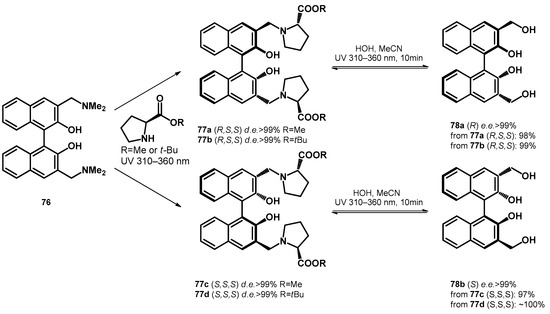 - Colloredo-Mels, S.; Doria, F.; Verga, D.; Freccero, M. Photogenerated Quinone Methides as Useful Intermediates in the Synthesis of Chiral BINOL Ligands. J. Org. Chem. 2006, 71, 3889–3895. [Google Scholar] [CrossRef] [PubMed]
