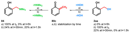 - Nakatani, K.; Higashida, N. Highly Efficient Photochemical Generation of O-Quinone Methide from Mannich Bases of Phenol Derivatives. Tetrahedron Lett. 1997, 38, 5005–5008. [Google Scholar] [CrossRef]