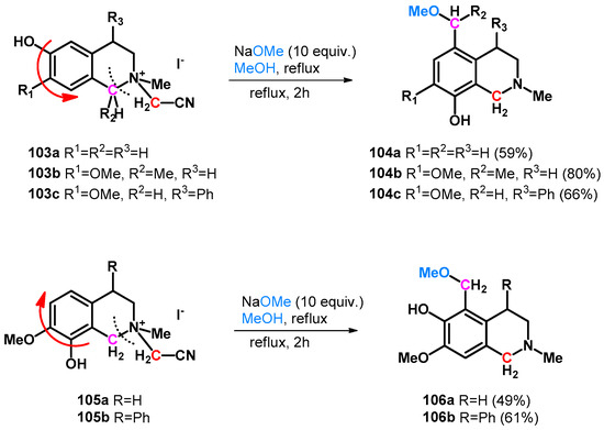 - Hara, H.; Kaneko, K.; Endoh, M.; Uchida, H.; Hoshino, O. A Novel Ring Cleavage and Recyclization of N-Cyanomethyl-1,2,3,4-tetrahydroisoquinolinium Methioidides: A Biomimetic Synthesis of Libetamine. Tetrahedron 1995, 51, 10189–10204. [Google Scholar] [CrossRef]