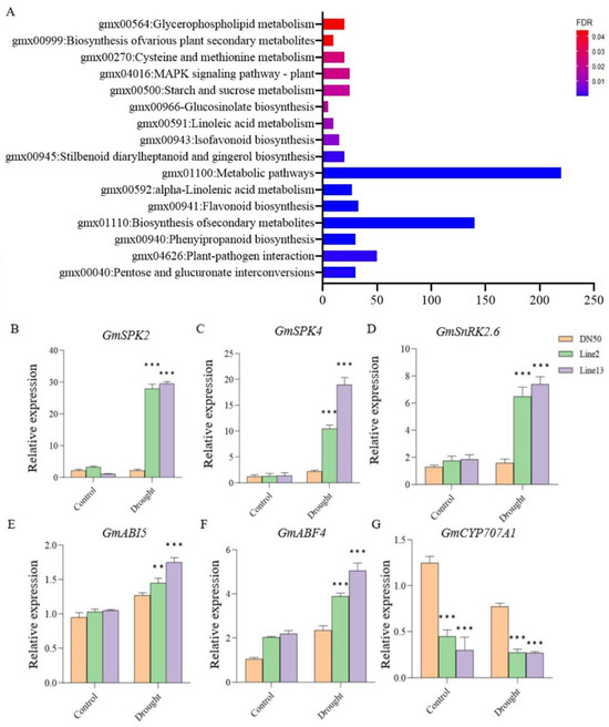- Xuan, H.; Huang, Y.; Zhou, L.; Deng, S.; Wang, C.; Xu, J.; Wang, H.; Zhao, J.; Guo, N.; Xing, H. Key Soybean Seedlings Drought-Responsive Genes and Pathways Revealed by Comparative Transcriptome Analyses of Two Cultivars. Int. J. Mol. Sci. 2022, 23, 2893. [Google Scholar] [CrossRef]