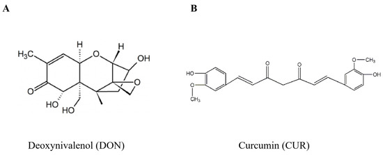(A) Chemical Structures of Deoxynivalenol. (B) Chemical Structures of Curcumin.