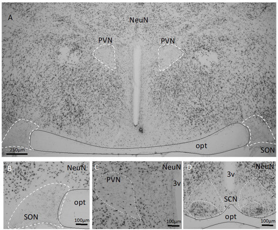 - van Eerdenburg, F.J.; Lugard-Kok, C.M.; Dieleman, S.J.; Bevers, M.M.; Swaab, D.F. Influence of gonadectomy and testosterone supplementation on the postnatal development of the vasopressin and oxytocin-containing nucleus of the pig hypothalamus. Neuroendocrinology 1991, 54, 580–586. [Google Scholar] [CrossRef]