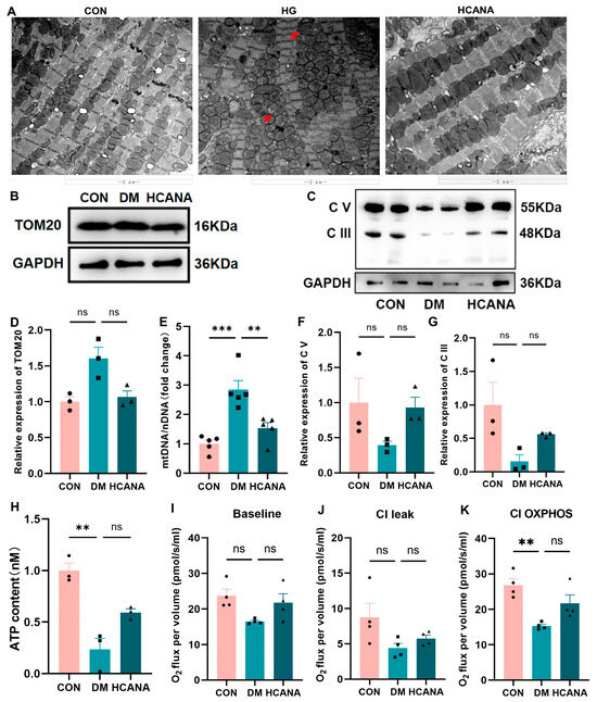 2.5. Canagliflozin Resulted in a Substantial Enhancement of Cardiac Mitochondrial Quality in Diabetic Mice
