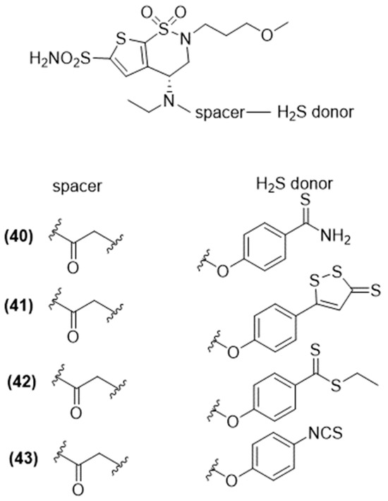 All hybrids, compound 12-23 (Figure 7) have been proven to release H2S in both buffer solutions (with thiol activation) and bronchial smooth muscle cells, as confirmed by H2S electrode measurements and fluorescent probes [62,63].