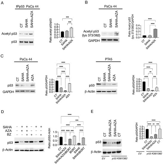 2.3. SAHA/5-AZA Increases mutp53 Acetylation Further Promoting Its Proteasomal Degradation