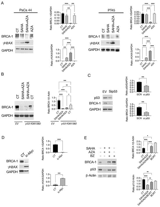 2.5. SAHA/5-AZA Downregulates BRCA-1 and Induces DNA Damage in Pancreatic Cancer Cells