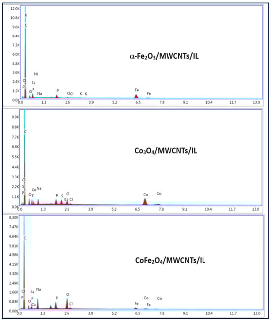 α-Fe2O3/, Co3O4/, and CoFe2O4/MWCNTs/Ionic Liquid Nanocomposites as High-Performance Electrocatalysts for the Electrocatalytic Hydrogen Evolution Reaction in a Neutral Medium