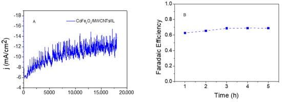 | CoFe2O4/MWCNTs/IL | 132 μmol cm2 h−1 | 68.8% | This work |