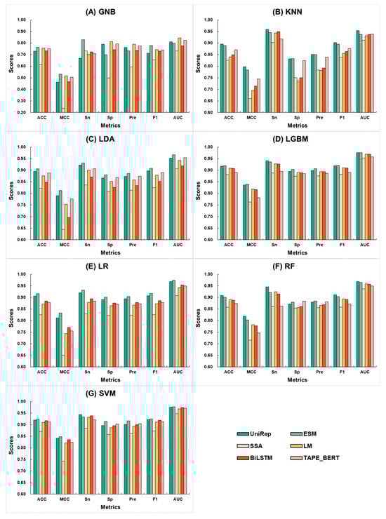 | Features/Metrics | ACC | MCC | Sn | Sp | Pre | F1 | AUC | ACC | MCC | Sn | Sp | Pre | F1 | AUC |