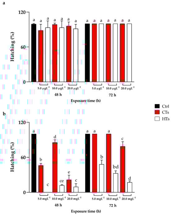 - La Pietra, A.; Fasciolo, G.; Lucariello, D.; Motta, C.M.; Venditti, P.; Ferrandino, I. Polystyrene Microplastics Effects on Zebrafish Embryological Development: Comparison of Two Different Sizes. Environ. Toxicol. Pharmacol. 2024, 106, 104371. [Google Scholar] [CrossRef] [PubMed]