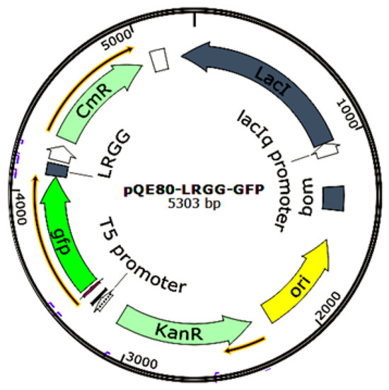 2.1. Construction of the pQE-GFP-LRGG Expression Vector