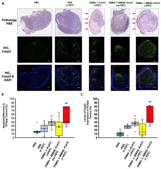 2.5. PSMA-1-MMAE-Pc413 with PDT Caused More Tissue Damage