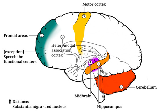 Structural neuroimaging studies showed that the aging process proceeds differently in different areas of the cerebral cortex, with the frontal areas being particularly prone to atrophy [173]. In contrast to other regions of the central nervous system, the cerebral cortex exhibits a remarkable resilience to the processes associated with normal aging. While there is evidence of a gradual loss of synapses throughout the cortex with advancing age, the majority of neurons within this region appear to maintain their functionality throughout the lifespan [174].