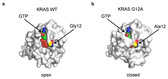 - Xu, S.; Long, B.N.; Boris, G.H.; Chen, A.; Ni, S.; Kennedy, M.A. Structural insight into the rearrangement of the switch I region in GTP-bound G12A K-Ras. Acta Crystallographica. Sect. D Struct. Biol. 2017, 73, 970–984. [Google Scholar] [CrossRef]