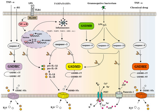 2. GSDMs, Inflammasomes, and Caspases in Pyroptosis