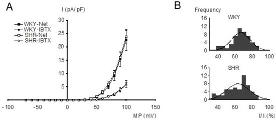 2.2. Comparison of the Properties of BK Currents in Tail Artery VSMCs of WKY and SHR