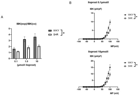2.3. Comparison of the Effect of Iloprost on BK Currents in Tail Artery VSMCs of WKY and SHR
