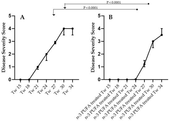 | n-3 PUFAs vs. disease severity | Spearman coefficient r = –0.63 95% C.I.: −0.8414 to −0.2424, n pairs = 20 p = 0.003 | Spearman coefficient r = –0.66 95% C.I.: −0.8557 to −0.2896 n pairs = 20 p = 0.002 |