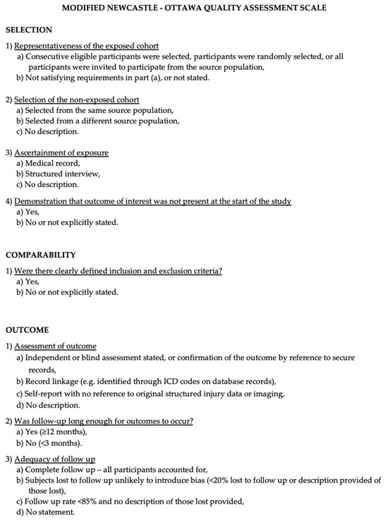 - Stang, A. Critical Evaluation of the Newcastle-Ottawa Scale for the Assessment of the Quality of Nonrandomized Studies in Meta-Analyses. Eur. J. Epidemiol. 2010, 25, 603–605. [Google Scholar] [CrossRef]
