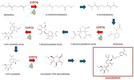 - Wang, C.; Xue, L.; Cui, Q.; Liu, Q.; Zhang, J.; Rao, G. Genome-Wide Identification of the Cytochrome P450 Superfamily in Olea europaea Helps Elucidate the Synthesis Pathway of Oleuropein to Improve the Quality of Olive Oil. Sci. Hortic. 2022, 304, 111291. [Google Scholar] [CrossRef]