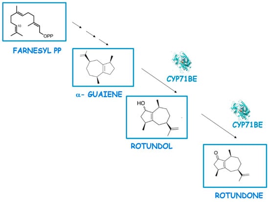 - Takase, H.; Sasaki, K.; Shinmori, H.; Shinohara, A.; Mochizuki, C.; Kobayashi, H.; Ikoma, G.; Saito, H.; Matsuo, H.; Suzuki, S. Cytochrome P450 CYP71BE5 in Grapevine (Vitis vinifera) Catalyzes the Formation of the Spicy Aroma Compound (−)-Rotundone. J. Exp. Bot. 2016, 67, 787–798. [Google Scholar] [CrossRef]