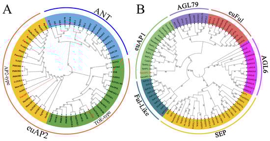 - Kerstens, M.H.; Schranz, M.E.; Bouwmeester, K. Phylogenomic analysis of the APETALA2 transcription factor subfamily across angiosperms reveals both deep conservation and lineage-specific patterns. Plant J. 2020, 103, 1516–1524. [Google Scholar] [CrossRef] [PubMed]